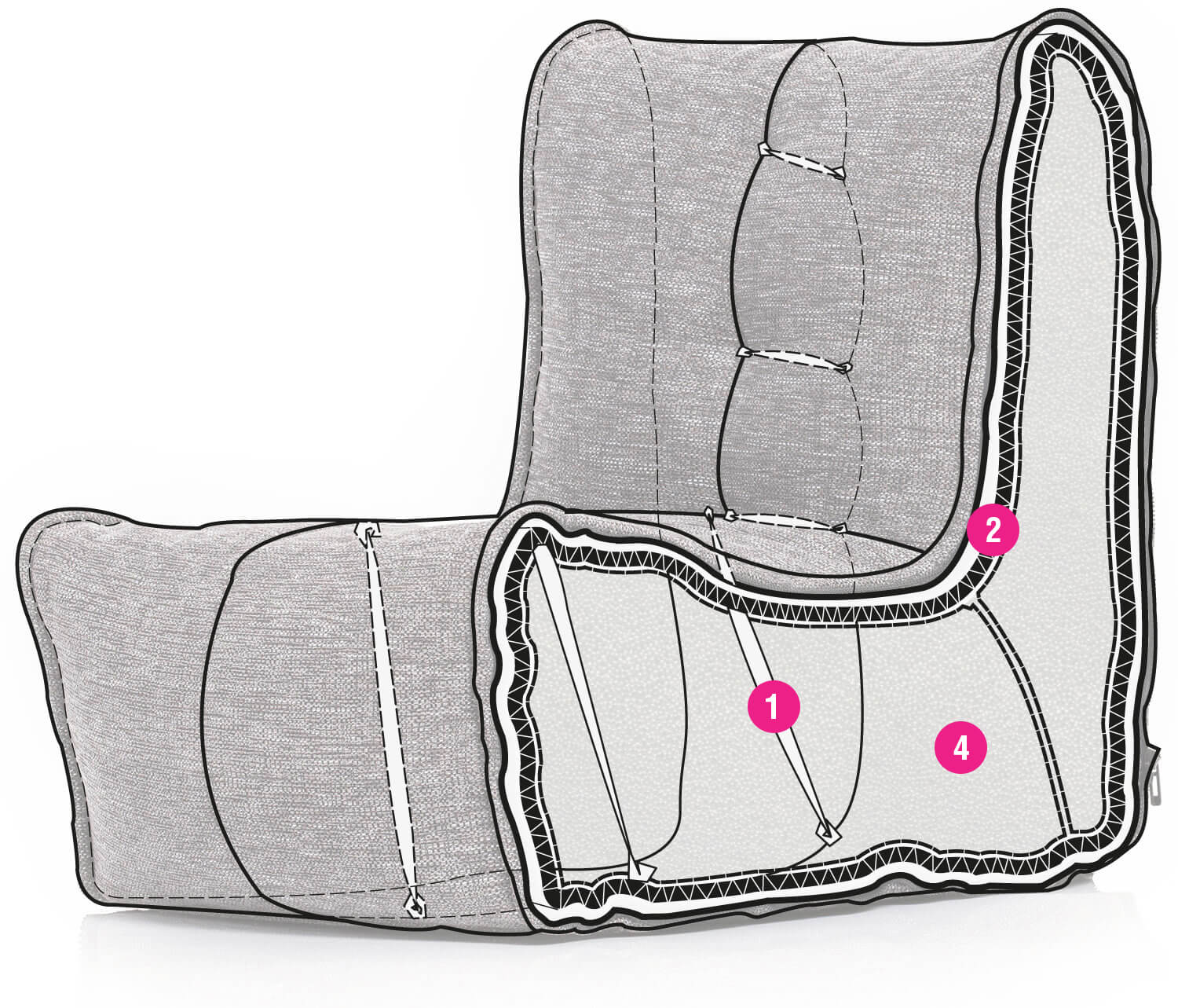Deine persönliche Wolke 7: Eine üppige Schicht Baumwollpolster & die hochwertige Mikro-Füllung machen unsere Lounges zum gemütlichsten Platz in Deinem Zuhause.